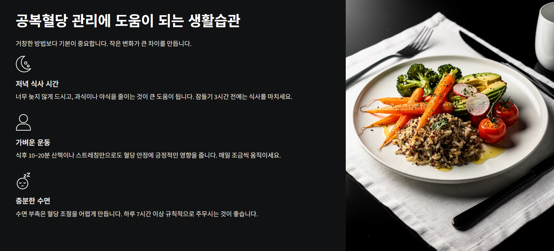 공복혈당이 정상 범위에 있다고 해서 완전히 안심하실 필요는 없습니다. 아침 공복 수치는 괜찮은데 식사 후 혈당이 많이 오르는 분들도 적지 않습니다. 특히 빵, 면, 밥 위주의 식사를 자주 하신다면 공복혈당 정상수치표만 보고 방심하기 쉽습니다. 평소 식후 졸림, 잦은 갈증, 피로감이 있다면 수치와 함께 몸의 신호도 살펴보시는 것이 좋습니다. 정상 수치는 관리가 필요 없다는 뜻이 아니라, 지금 상태를 유지하라는 의미로 받아들이시면 됩니다.